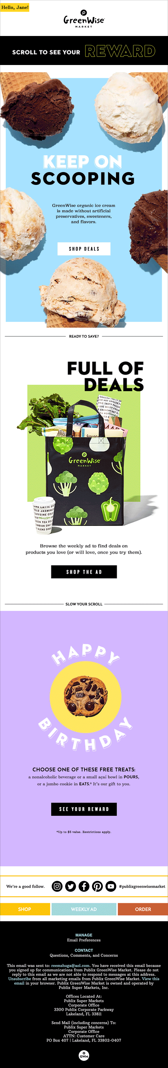 Publix GreenWise Market REWARD emails